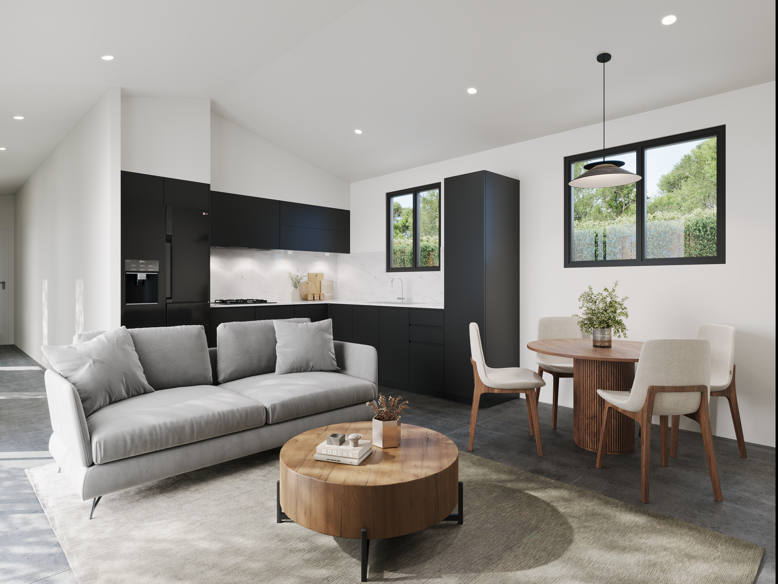 Every detail is crafted for function and flow. The open-plan kitchen, dining, and living area invite natural light through large sliding doors and windows, creating an airy, welcoming atmosphere. With quality finishes, energy-efficient insulation, and thoughtful design, The Maison delivers year-round comfort and effortless sophistication.